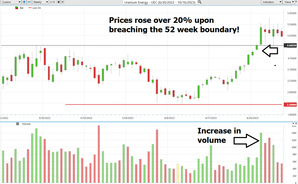 Recently we did a stock study on Uranium Energy Corporation. One of our key filters in stock selection is looking for stocks that have either broken out and successfully breached the 52-week highs or are approaching their 52-week highs. From this short list we then use our ai trading software to apply machine learning and neural networks to the trends with the highest probabilities of success.