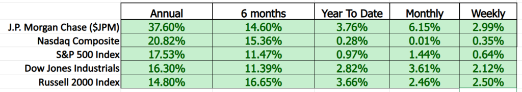 The table offers a rare moment of clarity in a market often dominated by narrative. When JPM’s returns are placed alongside the major indexes, the distinction is not subtle. Over the past year, the stock is up 37.6%, more than doubling the gains of the S&P 500 and comfortably outpacing the Nasdaq and Dow. That outperformance is not confined to a single time frame, either. Whether measured over six months, one month, or one week, JPM consistently sits at or near the top of the list. This is not an argument built on storytelling; it is an argument built on arithmetic.