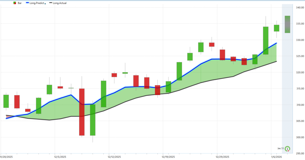 Now here’s the part most people miss — and it’s the only part that matters. The spread between those two forecasts is $141.00. When you measure that variance against the most recent closing price of $334.61, you’re staring at a projected volatility range of 42%. Forty-two percent. That’s Wall Street quietly admitting it has no consensus and fully expects big movement. Direction is debatable. Magnitude is not. This is the market telling you, in plain numbers, “Don’t get comfortable.”