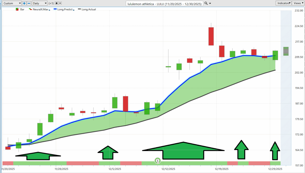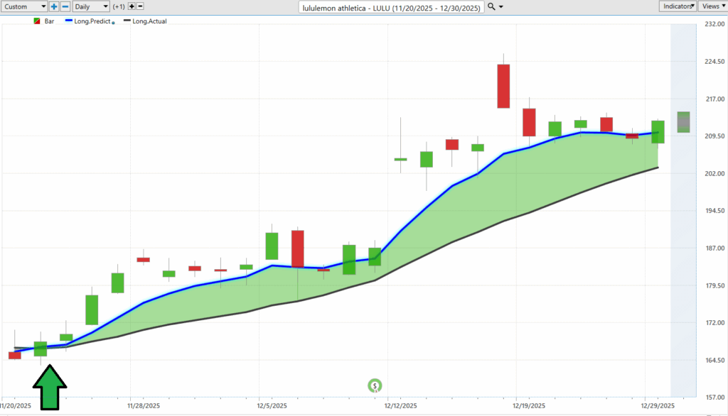 Put the two together and the message is clear. Volatility is not something to fear. It’s something to measure. The VantagePoint A.I. Daily Range Forecast takes abstract movement and turns it into a practical framework traders can use every single day. It doesn’t promise certainty. It delivers context. And in a market that moves as fast as $LULU does, knowing where risk and opportunity live is not an advantage. It’s the difference between trading with intention and trading on hope.