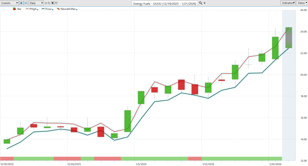 This is what traders want once the analysis dust settles. Clear expectations. Defined ranges. A framework for entries near support and exits closer to resistance, all while staying aligned with the prevailing trend. The Daily Range forecast does exactly that. It turns volatility from a source of anxiety into a tool, outlining both direction and distance in advance. In a stock that moves as aggressively as $UUUU, knowing where price is likely to travel next is not a luxury. It is the difference between trading with intent and reacting after the fact.