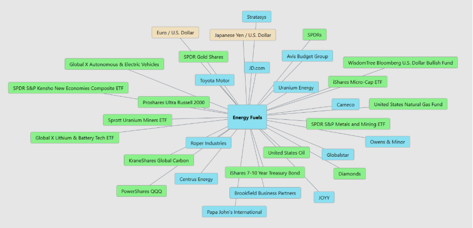 This graphic shows that Energy Fuels ($UUUU) is connected to a lot of different parts of the market, not just one thing. It is tied to uranium and energy, but also to mining, metals, clean energy, electric vehicles, and small company stocks. That means the stock can move when uranium prices change, when energy or mining stocks move, or when investors feel more or less comfortable taking risks. Because so many things influence it at the same time, the stock can move fast and swing a lot. In simple terms, $UUUU is like a hub with many roads leading in and out, and when traffic picks up on any of those roads, the stock feels it.