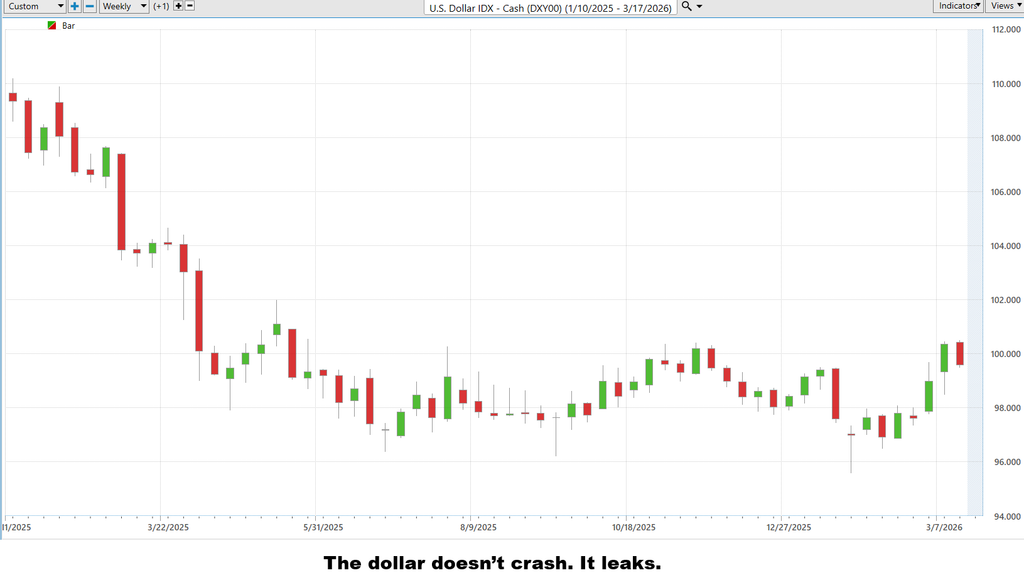 Energy prices move higher. The dollar faces pressure at the margin. Hard assets begin to attract capital. These are not isolated reactions. They are connected signals.