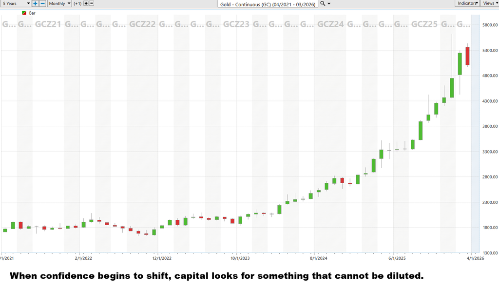 When confidence begins to shift, capital looks for something it cannot be diluted.