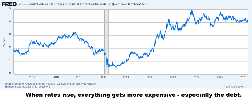 And that is the trap. The more debt you have, the fewer good choices you get. You can lean into higher rates and stress the system, or you can lean into accommodation and gently remind everyone that the currency supply is, shall we say, flexible.