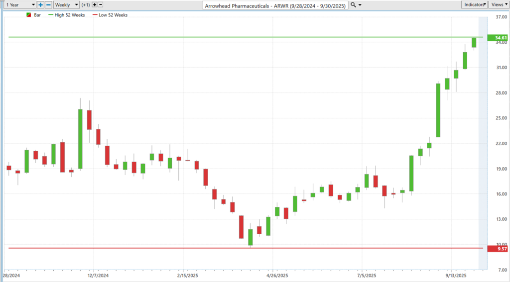 And that’s the whole point: traders chase strength, not pity parties. Stocks that keep punching through 52-week highs are the ones that get the momentum crowd piling in, the hedge funds sniffing around, and the day-traders dancing on their chairs. ARWR’s message right now is simple — strong stocks keep getting stronger. And those are the stocks every trader wants in their portfolio.