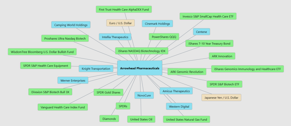 Arrowhead Pharmaceuticals ($ARWR) isn’t just some lonely science fair project — it’s strapped into a whole amusement park of markets that yank and tug it around. When biotech buddies like the XBI or QQQ blast off on hot trial results or juicy partnership news, Arrowhead rides shotgun, grinning ear to ear. But the villains lurk in the shadows: Treasury bonds tank when interest rates jump, the dollar flexes like a bully on the playground, and suddenly ARWR face-plants like a kid on roller skates.