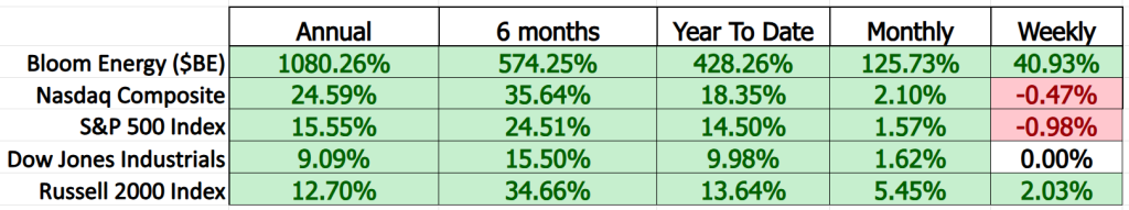 No matter how you slice the data, Bloom Energy ($BE) is leaving the broader market in the dust. The numbers are staggering — up 1,080% over the past year, 574% in the last six months, and 428% year-to-date — performance that makes the Nasdaq’s 24.6% look quaint by comparison. Even on a shorter horizon, Bloom is in a league of its own, rising 125.7% this month and 40.9% just this week, while the S&P 500 and Nasdaq actually slipped into negative territory. It’s rare to see a stock dominate this decisively across every timeframe — weekly, monthly, and annually — but Bloom’s ascent is a clear reflection of how the market is rewarding companies at the center of the A.I. energy revolution. While indexes grind along, Bloom is rewriting what outperformance looks like in real time.