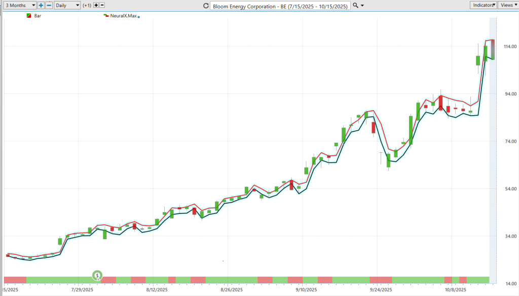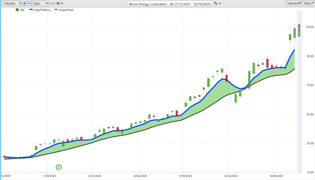 For a stock like Bloom Energy, which has surged amid the A.I. infrastructure boom, that level of predictive guidance is invaluable. In a market where speed and timing separate the professionals from the hopefuls, the A.I. range forecast gives traders a critical edge. It’s not just about knowing the direction of the trend — it’s about understanding the boundaries of opportunity. And lately, Bloom Energy has been pushing those boundaries to new heights.
