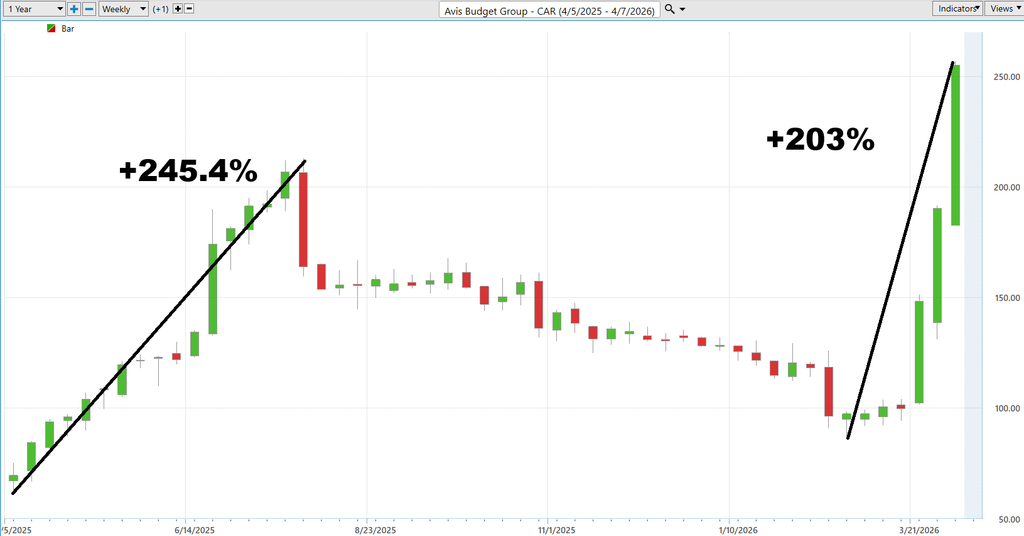 So what’s driving the move? The narrative being floated centers around tighter fleet supply, improving pricing power in rental markets, and a renewed appetite for travel. Fair enough. Those are real factors. But here’s the issue. None of those developments typically justify a triple-digit percentage move in under a month. That kind of price action is rarely about fundamentals alone. It smells more like positioning, short covering, and momentum piling on top of itself. In other words, the “why” exists… but the magnitude is questionable.