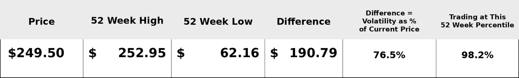 When you study the annual trading range as a percentage of the current price you see that over the past year $CAR has traded in a 190 point range which is 76.5% of the current price. This is massive and tells us just how volatile $CAR is.