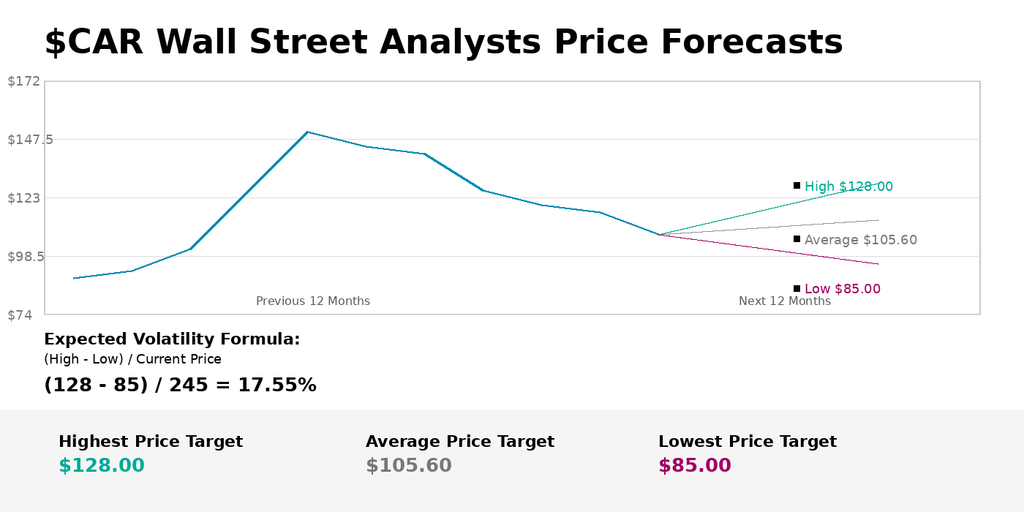 Let’s not overcomplicate this. $CAR has rallied more than 119% in just 24 trading sessions. That’s a rocket launch. And when price moves that far, that fast, it creates a problem. Either analysts are asleep at the wheel and need to aggressively upgrade their forecasts… or price has sprinted so far ahead of reality that it eventually snaps back toward the mean.