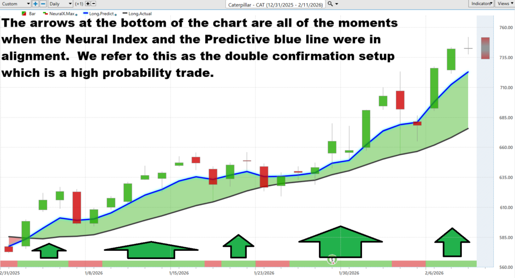 When the Neural Index is green and aligned with the upward sloping predictive blue line, it is signaling that all systems are go on the upside. Trend confirmed. Momentum confirmed. Probability increased.