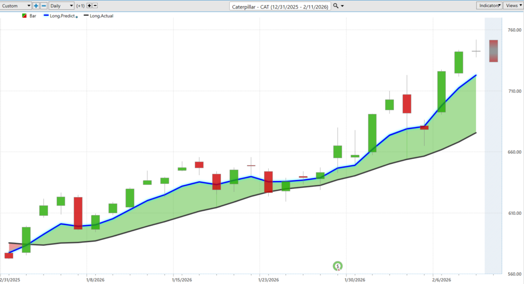 Volatility is not a character flaw. It is a job description. And if you are trading $CAT, you are not signing up for a meditation retreat. You are strapping into heavy machinery with a turbocharger. The first chart, with its red projected highs and teal projected lows wrapping around price, is not decoration. It is a daily map of where opportunity and risk are likely to reside before the opening bell even rings. The purpose of the Daily Range forecast is to isolate where opportunity and risk reside each and every trading day, and to this commitment it delivers in spades.