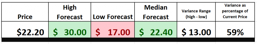 What I find interesting is the 59% variance between the most bullish analyst and the most bearish. Keep in mind that these are Wall Street Analysts who monitor the stock 24/7. The greater the variance between the bulls and bears the greater the opportunity for volatility which ideally is what we are looking for when guided by the artificial intelligence.