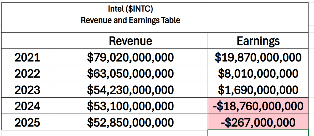 There was a time when Intel’s income statement read like a monument to inevitability. In 2021, nearly $80 billion in revenue and almost $20 billion in earnings suggested a company not just participating in the digital economy, but defining it. What followed looks less like a normal cyclical downturn and more like a structural reset. Revenue has fallen by roughly $27 billion not because the world stopped needing chips, but because Intel lost its grip on where the growth was happening. The personal computer market cooled after a pandemic surge, data center customers diversified away, and the most lucrative segment in modern computing, artificial intelligence, was largely captured by rivals. At the same time, Intel made a deliberate decision to spend aggressively, pouring tens of billions into new manufacturing capacity in an attempt to reclaim technological leadership. In other words, the company chose to trade present-day income for a shot at future relevance.