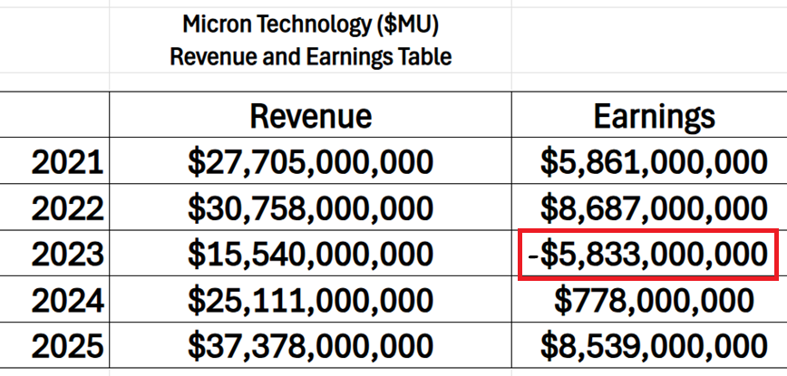 Study the finances for the last five years and you see massive volatility in the finances of $MU.