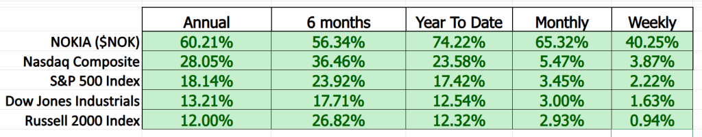 When you stack Nokia up against the major U.S. equity benchmarks — the Nasdaq Composite, the S&P 500, the Dow Jones Industrials, the Russell 2000 — something jumps out immediately. This isn’t a quiet recovery or a modest bounce. Nokia is outperforming the market… across every major timeframe.