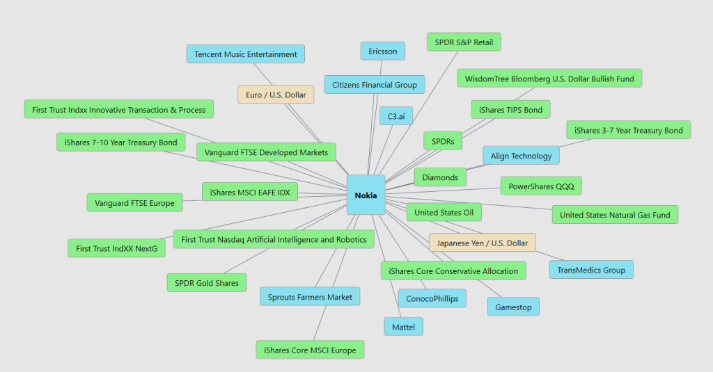 This intermarket map reveals the 31 key price drivers of Nokia ($NOK), the hidden forces shaping every major move the stock makes. It’s not just about telecom peers like Ericsson or AI partners like C3.ai — $NOK responds to sweeping global currents: currency strength (Euro/USD, Yen/USD), commodity demand (oil, natural gas, diamonds), interest rates (multiple Treasury bonds), and even the performance of massive ETFs like QQQ and SPDRs. These relationships are where traders uncover real edge. Study this chart closely and you’ll spot the unexpected allies and silent saboteurs influencing Nokia’s valuation every single day. If you want to forecast where $NOK is heading next, this is the roadmap.