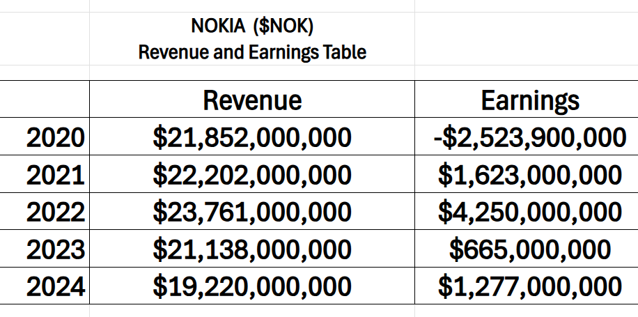 While we make all our decisions based upon the artificial intelligence forecasts, we do look at the fundamentals briefly, just to understand the financial landscape that $NOK is operating in.