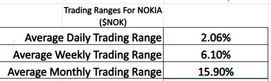 Now look at this graphic which provide the information as to what the average daily, weekly and monthly trading ranges have been.