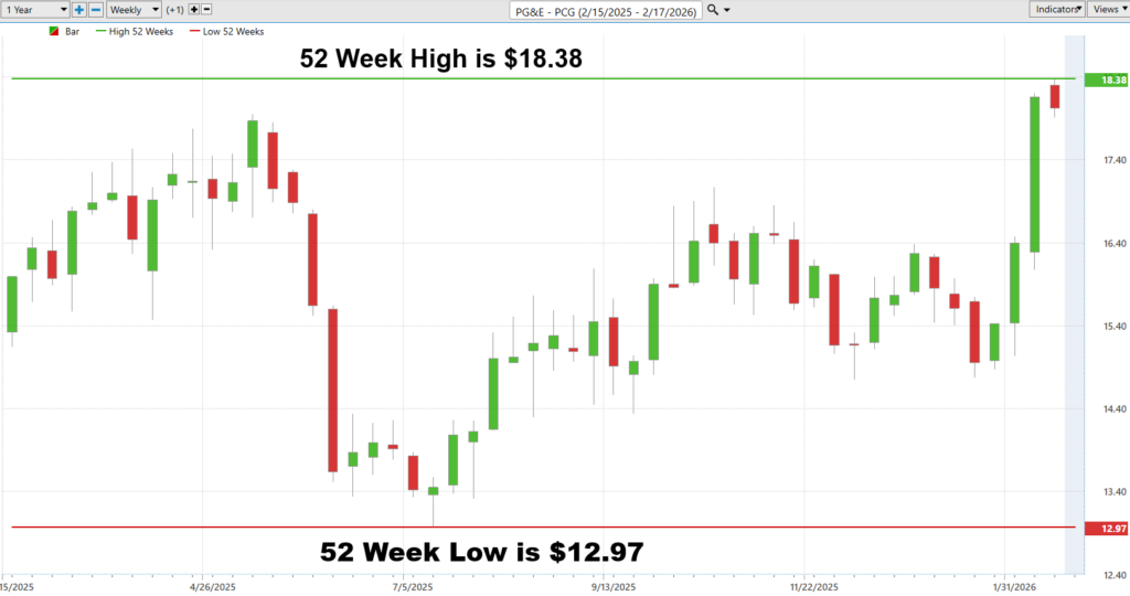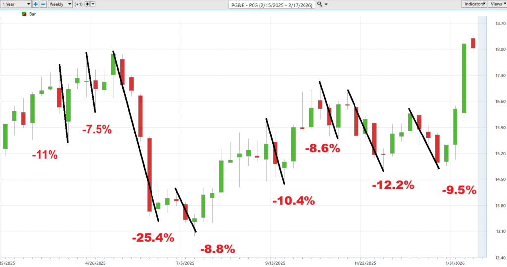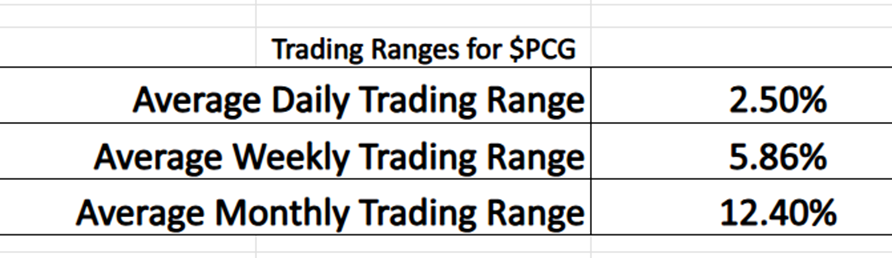 $PCG’s average daily trading range is 2.50%. Weekly? 5.86%. Monthly? 12.40%.