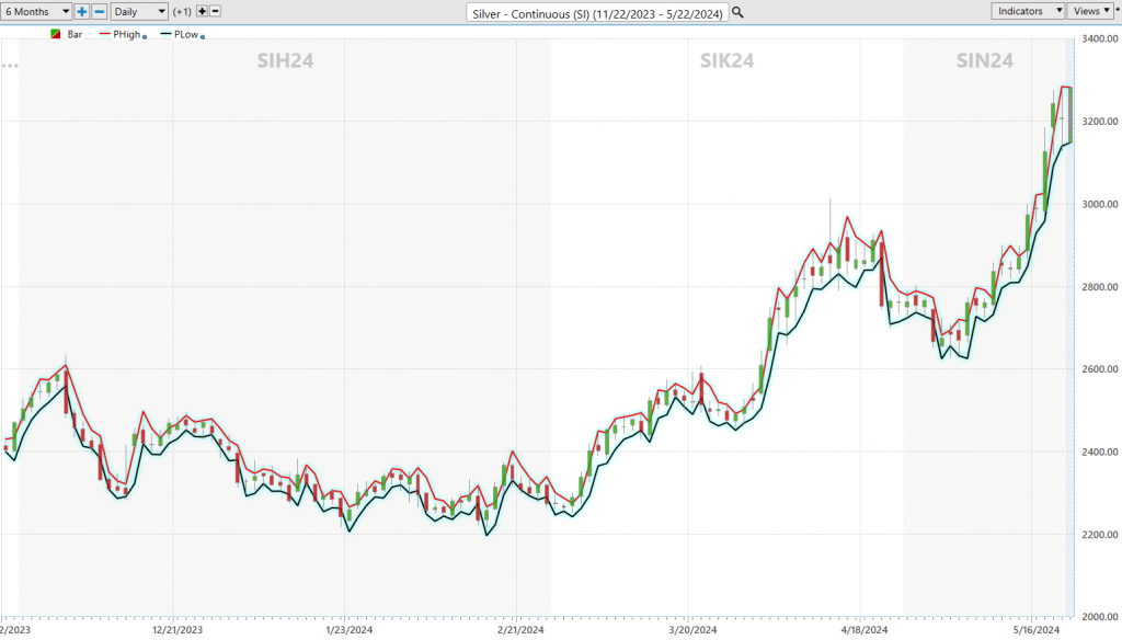 The bullish outlook for silver hinges on growing industrial demand from green technologies, increased investment as a hedge against inflation, a weakening US dollar, and low interest rates, all of which support higher prices amid supply constraints from mining disruptions. Conversely, the bearish outlook is based on a strong economic recovery that reduces safe-haven demand, a stronger US dollar, rising interest rates, and potential oversupply due to increased production and recycling, which could drive prices down. Both perspectives consider key economic factors that influence silver’s market dynamics. These are the prevailing theories that try and explain the price action in the silver market today.