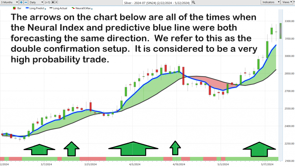 Check out the chart: every arrow marks a moment when the Neural Index and the predictive blue line pointed in the same direction. These high-probability trades are what we call the double confirmation setup. This setup is all about enhancing your confidence and precision in trading decisions.