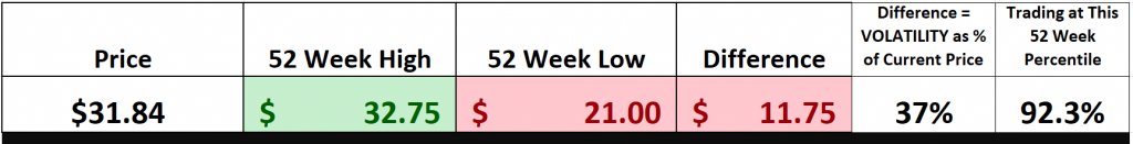 When we look at these metrics, we pay attention to the variance between the 52-week high and the 52-week low as it is often a very good indicator of expected future volatility.