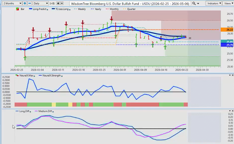 So I don’t really have to have that on my chart because I can see it right there. Now, the long-term trend is still up. Neural index and neural index strength are both pointing up.