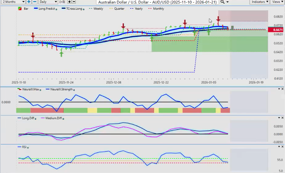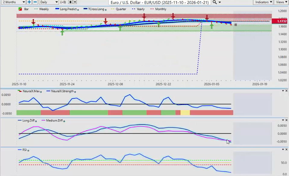If we’re holding above that level, then we’ve got a trade. Now, the neural index strength is very interesting. The neural index itself is down, meaning red, but you can see that the neural index strength is flattening out.
