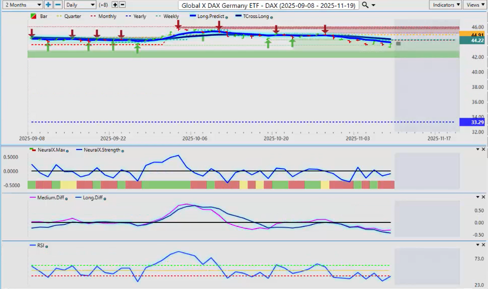 We have a medium-term crossover, a long-term crossover, but our neural index strength is flat. And the predicted RSI has that classic reverse check mark here suggesting that no, maybe this is still corrective in nature.