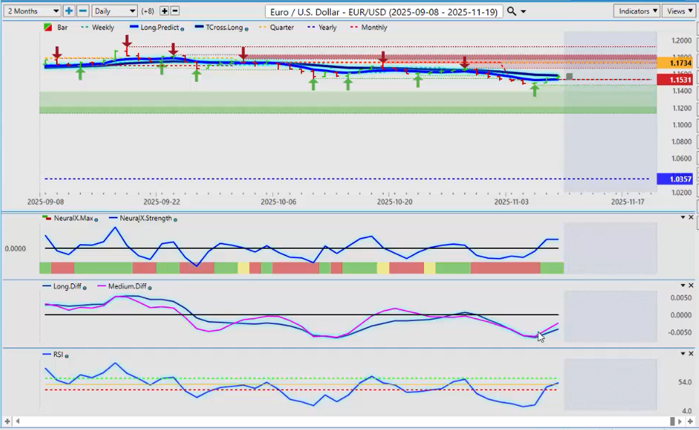 So again, we need proper anchor points in our trading. We can’t guess at what the performance is. We can’t randomly move performance points at the in the middle of the month. We need to know exactly what the euro has done this year, and that’s what it’s done. It’s actually having its best year in a long time. So, if you’re buying the euro, you are staying with the primary trend, I would argue. And going into the year end, I do anticipate the euro can rally further, but that will be dependent on the Fed and whether he is going to cut or whether he’s going to hold. And more specifically, what is he doing with the dot chart plan? Is he going to be cutting more in 2026?