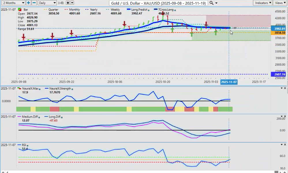 But in my respectful opinion, either way gold goes higher in December. But for now, the indicators are turning positive. We just need to break through and stay above 4010. If we can do that, gold will likely return very quickly in the weeks ahead back up to its most recent high at 4381.