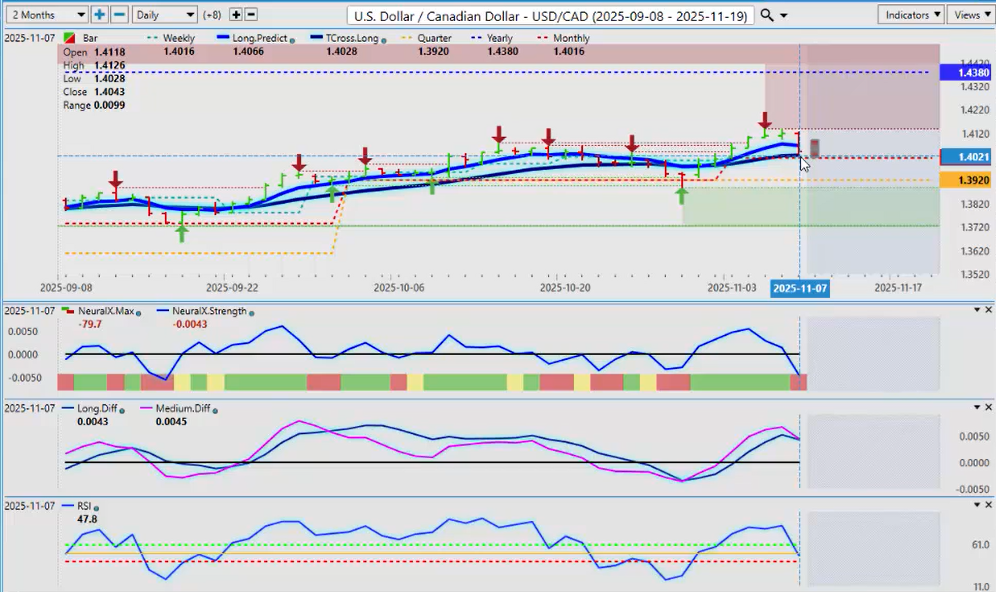 Right now, the indicators are saying the USD/CAD can move lower, but we’ve got to break through the T-Cross Long and stay below it at 1.4028.