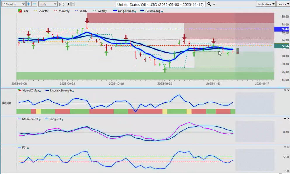 We tried to break above it back up here in the third week of October only to move lower again. We come back up, retrace to that area in the first part of November, and then we’re down again. So keep an eye again on the quarterly opening 72.65 and of course our T-Cross Long 71.69. We would need a clean break of these levels in order to be more hawkish or bullish on this particular commodity. But for now, I think we have a little bit of upside coming next week but probably not a lot.”