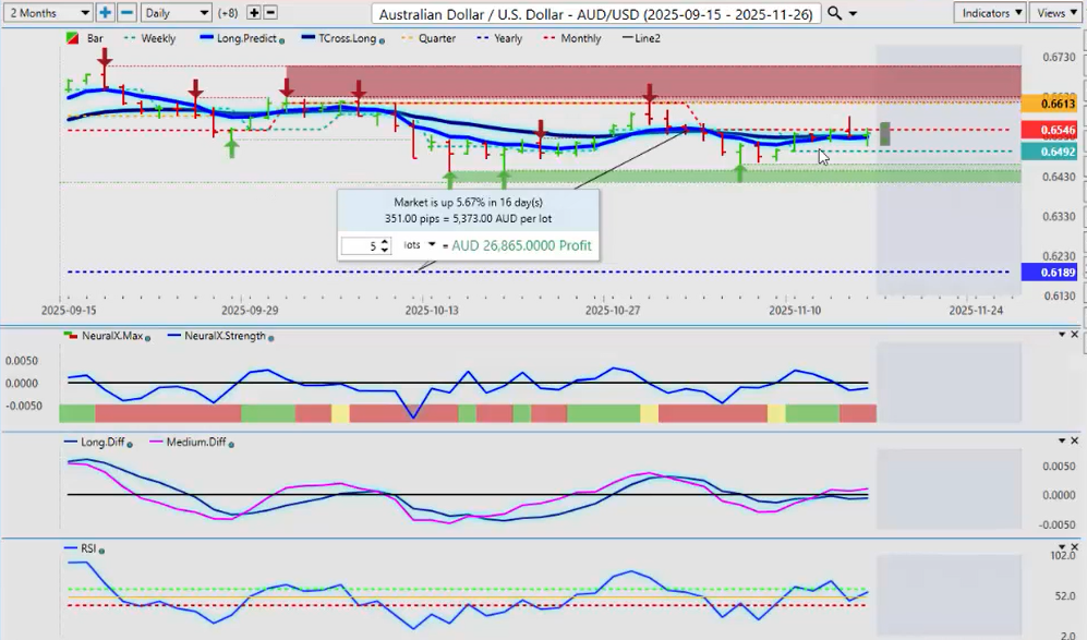So, the Aussie — if the stock market can extend its gains next week — the Aussie looks very, very good for longs. And I would — again — watch that T-Cross Long 0.6529.