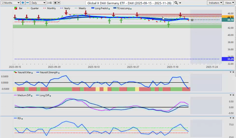 Now, definitely want to make sure I’m looking at the Global XDAX ETF. I believe the DAX is falling prey to the same thing that the S&P 500 and the Nasdaq did. But again, if the US stock markets turn higher, I believe that will benefit the DAX.