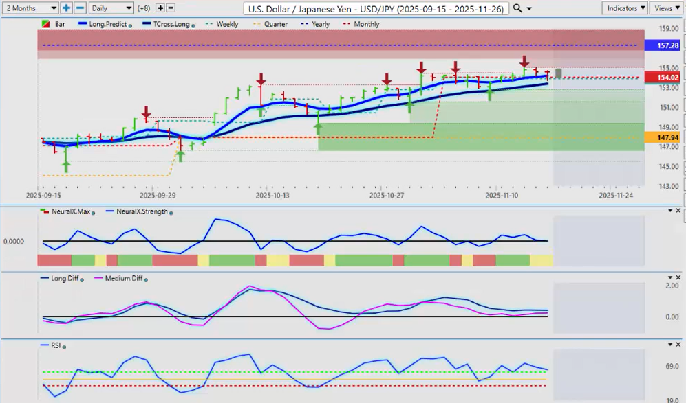 Right now, the indicators are relatively neutral with this particular pair, with a slight — very slight — upward bias.
