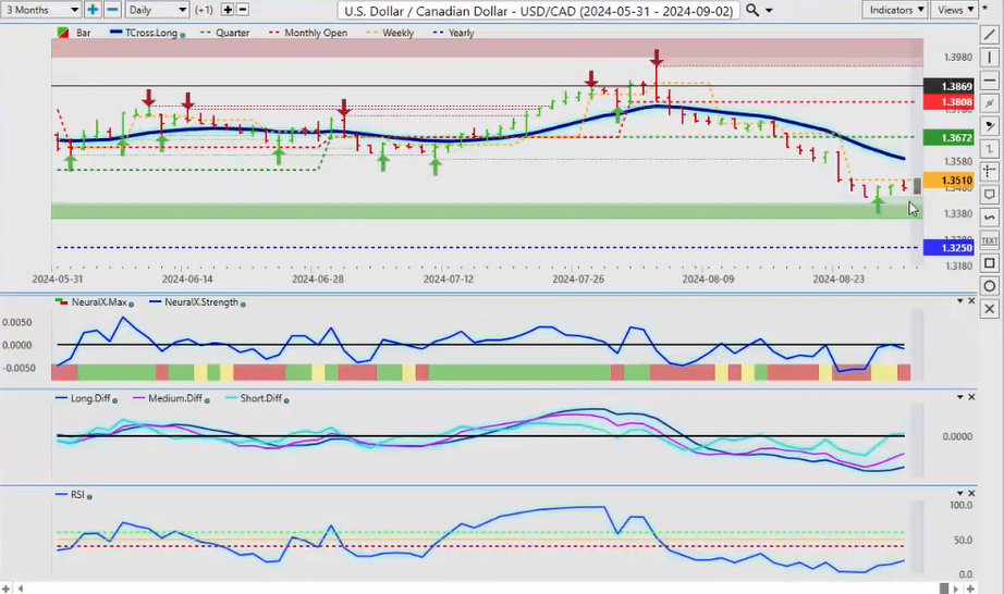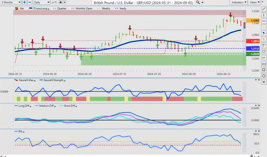 Now, again, the predicted RSI is not used as an overbought or oversold indicator; it’s used as a momentum indicator, suggesting there is Dollar buying coming. Now, a bit of an issue with that neural index strength, but the main thing we have to clear is the Vantage Point T cross long at 101.94. If the Dollar is going to fail, that’s where it’s going to be. Now, the media, in my respectful opinion, is completely out of control with the things they’re saying. There is no emergency rate cut, there is no emergency Fed meeting. The FED is very unlikely to cut 50 basis points. They’re building a narrative to weaken the Dollar, in my respectful opinion, so the banks and some of the larger institutions can get a better price on Dollar longs. So, again, to confirm that, we need to clear 101.94. That will confirm that that seasonal pattern of Dollar buying in the month of September up until the end of the month is still likely in the cards.
