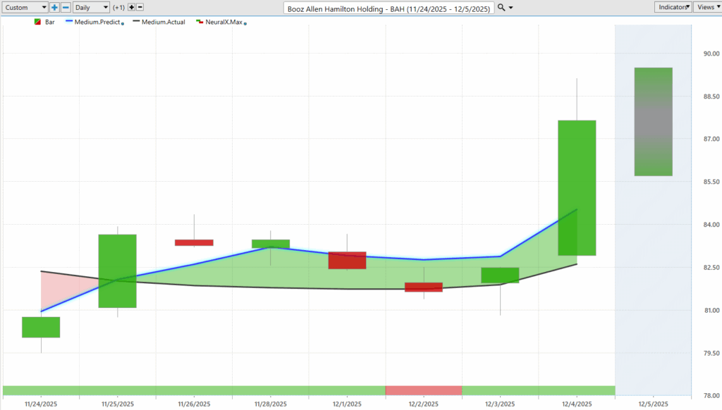 Over the past seven trading days, BAH has moved about 6–7% higher. Predicted lows again acted as key accumulation levels as the broader market began strengthening.