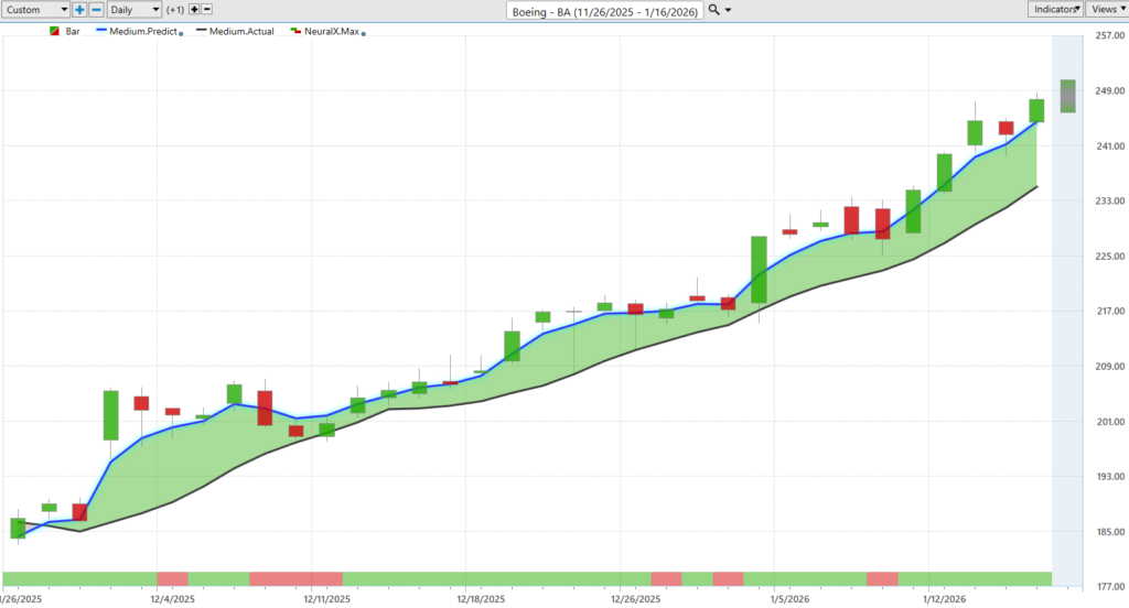So there are separate neural network technologies taking care of all these different problems, whether it be again that predicted moving average, the neural index at the bottom of the chart, and also picking out these intraday price levels of a predicted high and a predicted low.