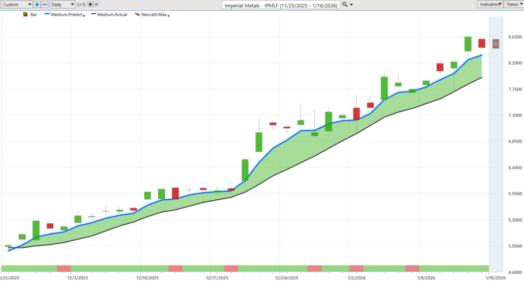 And lastly here, Imperial Metals ($IPMLF), just Imperial Metal. So another market that we brought through a couple of weeks ago. A little bit more spotty price action with some more gaps on the chart.