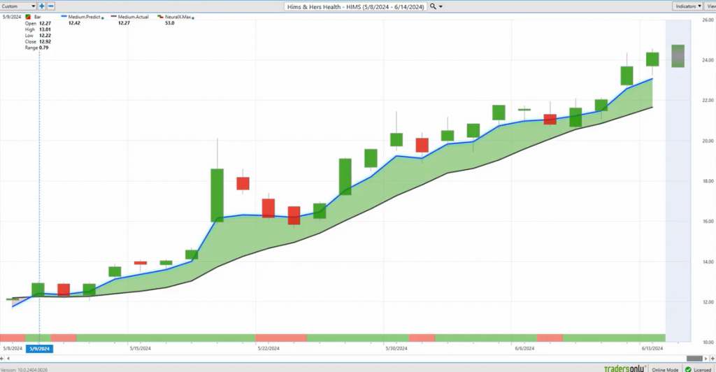 One of the stocks we’ve actually highlighted for the past three weeks is Hims and Hers Health ($HIMS). We can identify all this strength coming through the Vantage Point forecast. Let’s explain how all of this works, whether you’re looking for a big shift and a swing trade in the market or looking to do some shorter-term day trades.
