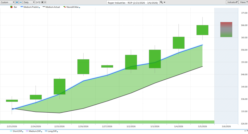 So here’s Roper Industries ($ROP) blue line over black line and just look at this forecast right neural index bullish the entire way through here.