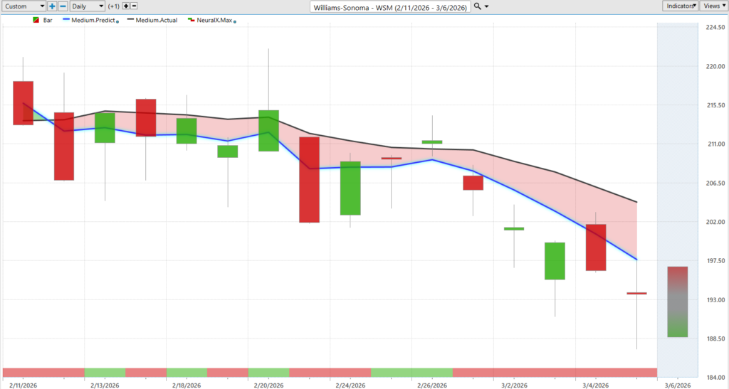 Really for the past 3 weeks William Sonoma ($WSM) that blue line has been solidly below the black line. You get a little bit of conflict here right that neural index bullish neural index bullish.