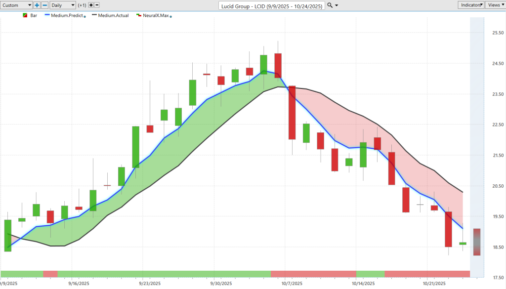 A couple of weeks ago, we looked at Lucid Group (LCID)—another example of how these tools adapt. As we see this blue line crossing above the black line and the neural index bullish, it really highlighted opportunities to get a position on.